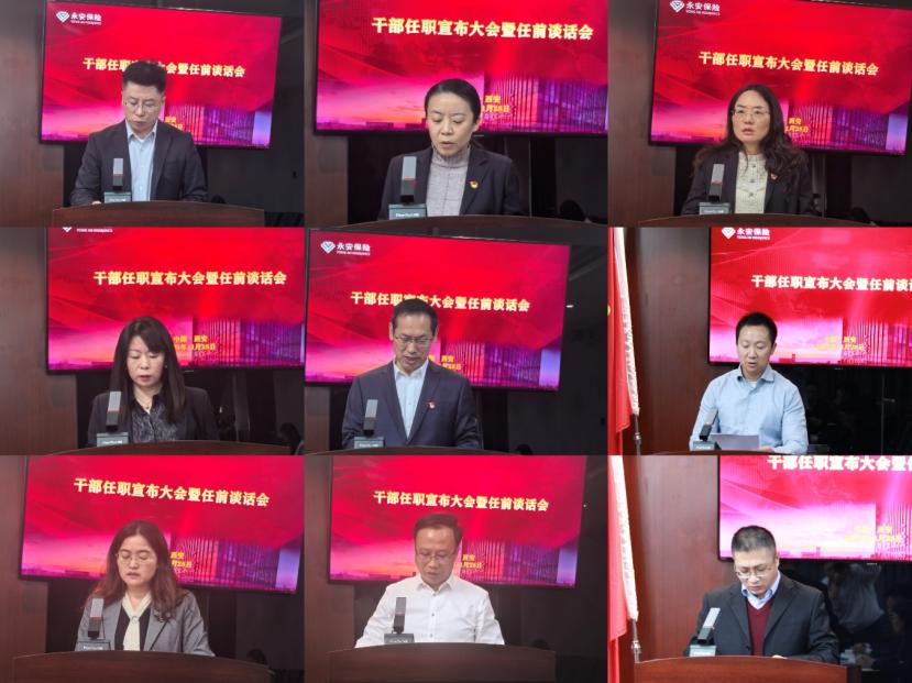 常磊代表公司党委和领导班子对新任职同志表示了热烈祝贺,并强调职务提升意味着责任升级,面对当前保险业服务国家战略的新使命,希望大家始终胸怀“国之大者”,深刻把握“保险姓保”的本质要求,筑牢政治忠诚、提升能力素质、扛起改革重任、提升治企本领、永葆清廉本色。始终把讲政治的要求融入履职尽责的全过程,以“归零”心态迎接挑战,把学习成果转化为解决实际问题的过硬本领,在助推公司做好科技金融、绿色金融、普惠金融、养老金融、数字金融“五篇大文章”中找准定位、精准发力。