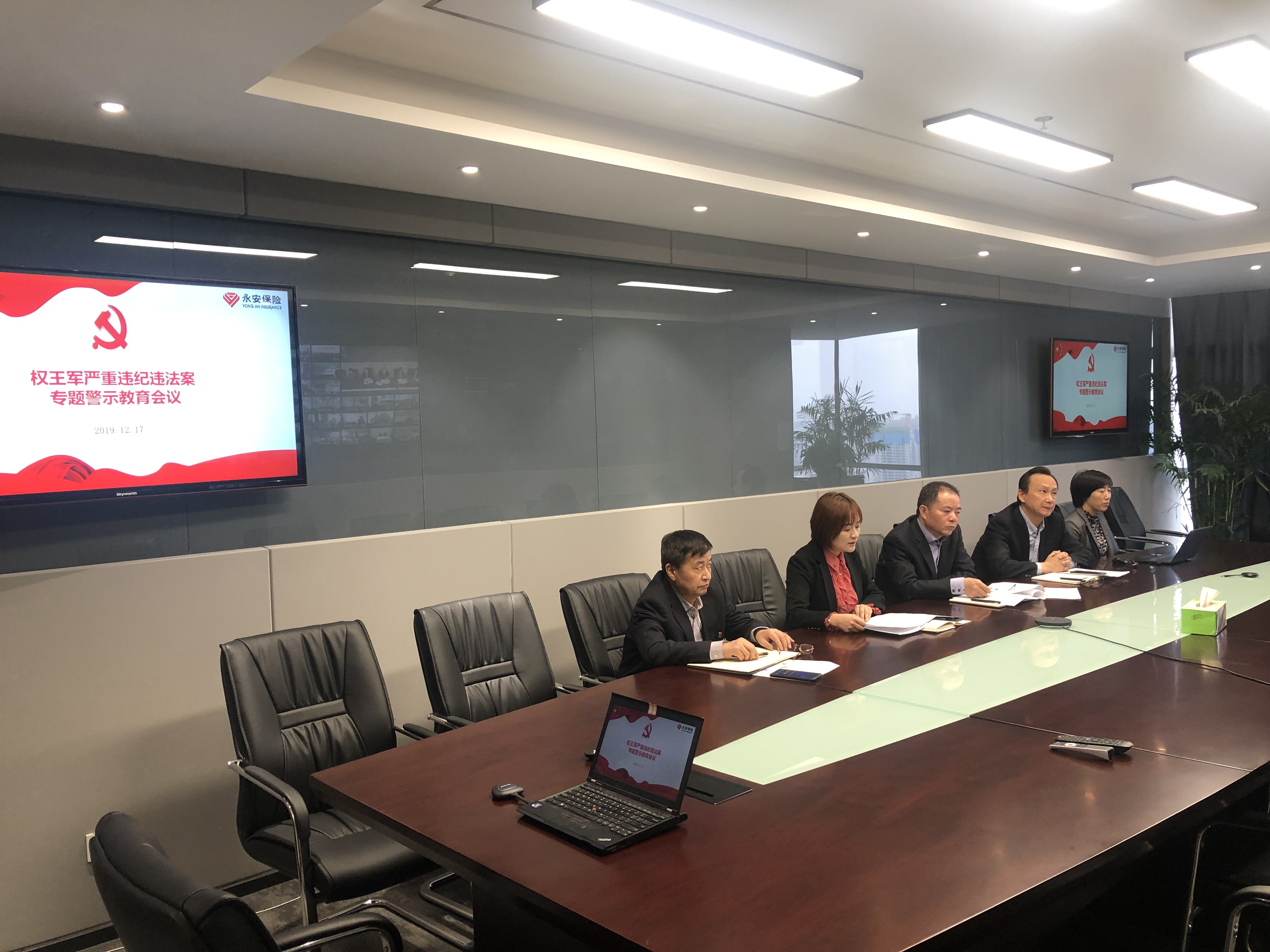 12月17日,驻永安保险公司纪检监察组组织开展权王军严重违纪违法案专题警示教育活动,40余名纪检监察干部参加了会议。