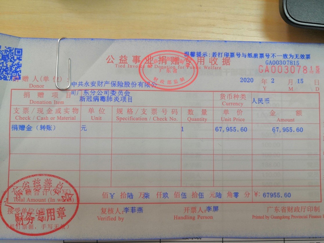 2月3日,广东分公司发起疫情捐献爱心活动,全省员工踊跃捐赠,共募得6.795万元爱心款,并通过广东省慈善总会送达抗击疫情一线单位和人员,传递爱心。
