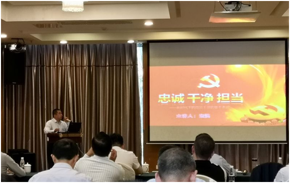 会上,党总支书记张洪同志作了“忠诚干净 担当”的主题党课。他指出,作为一名党员干部必须加强党性修养,始终坚持对国家、对人民、对事业的忠诚。强调党员干部特别是领导干部在行使手中权利的时候,要做到心有所畏、行有所止,自觉把清正、廉洁、自律作为做事的底线,在任何时候都应把党和人民的利益放在第一位,做到行得端、做得正。他还通过分享新中国建立和建设中涌现出的优秀党员的光荣事迹,为全体党员和干部更好地诠释了什么是担当与责任,鼓励广大党员和干部要时刻以强烈的自律意识约束和要求自己,真正做到信念坚定、为民服务、勤政务实、敢于担当、清正廉洁。