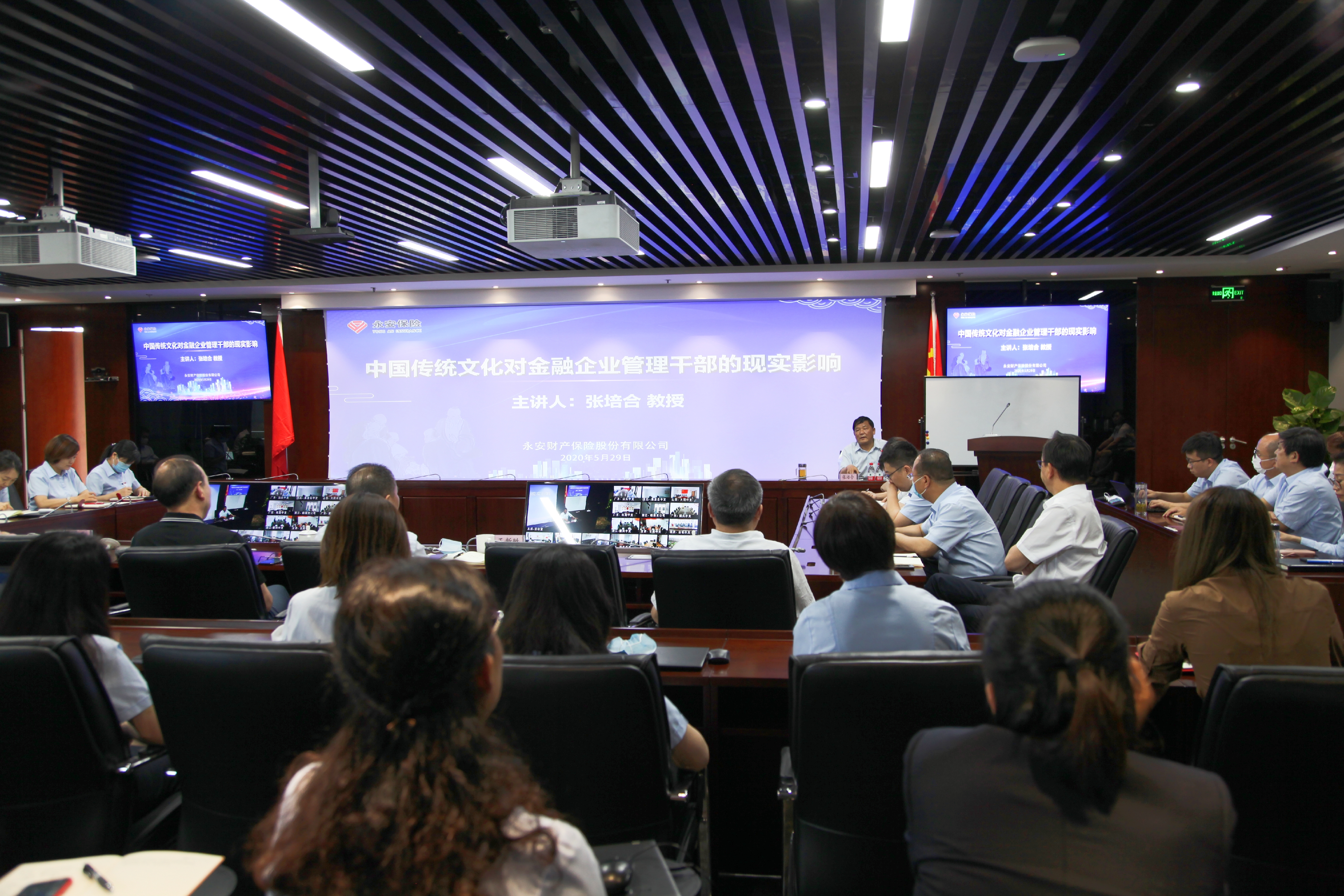西北大学中国文化研究中心秘书长、陕西孔子学会副会长、陕西省社会科学院研究员张培合教授,从中国传统文化的形成、历史影响与现实意义;传统文化对金融企业文化和管理人员思想的引导、熏陶;传统文化与现代管理思想的传承、互补三个方面,全面阐述了中国传统文化对金融企业管理干部的现实影响。180分钟的时间里面,张教授带领与会人员一起畅游5000年的中国传统文化长河,用一个个耳熟能详的人物和典故,来通俗的阐述作为一个金融企业管理干部应该如何做人、做事、爱岗、敬业、追求、奉献、感恩。与会人员在倾听、比对、思考、理解、提高、认同、共鸣中进一步加深了对“良知永安、知行合一”的理解。