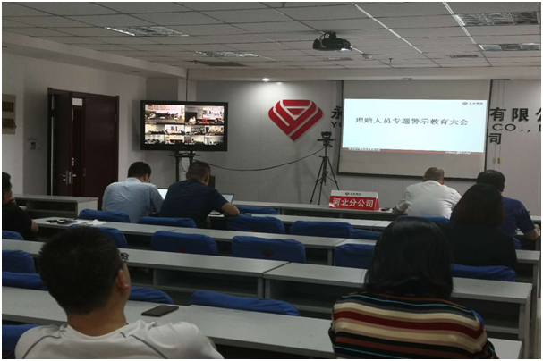 分公司党总支委员、分管理赔工作的副总经理陈灵同志代表分公司党总支,结合驻公司纪检监察组理赔人员警示教育会议精神和河北分公司理赔人员郁海波违法违纪案件情况,对参加会议的人员进行了警示教育,提出了相关要求:一是各级理赔人员要认真学习驻公司纪检监察组理赔人员警示教育会议精神,不忘初心,牢记使命;二是要认真学习国家法律法规,学习公司规章制度,保持清廉从业,时刻做到知敬畏、存戒惧、守底线;三是以分公司秦皇岛中心支公司郁海波、王德量典型案件为反面教材,以案为鉴,以案促改,做到警钟长鸣,防患未然;四是分公司要对过往理赔案件持续跟踪检查,发现问题,解决问题,做到规范管理,防范风险。
