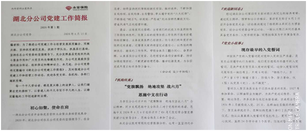 6月15日,湖北分公司党委首次编印《湖北分公司党建工作简报》(以下简称《简报》)正式刊发上线。