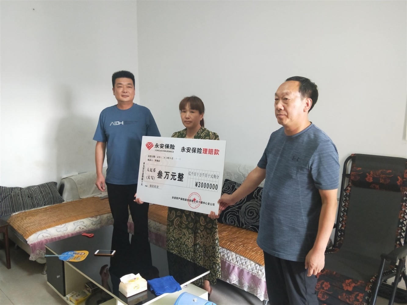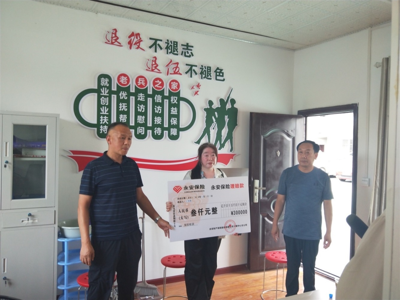 8月31日上午,湖北十堰郧阳区杨溪铺镇刘湾村,因病突然去世的退伍军人任顺启的妻子王明霞收到3000元意外疾病补偿金。她红着眼睛说:“没有想到还能收到三千块钱,真是雪中送炭,感谢党和政府关心,感谢永安保险帮助!”