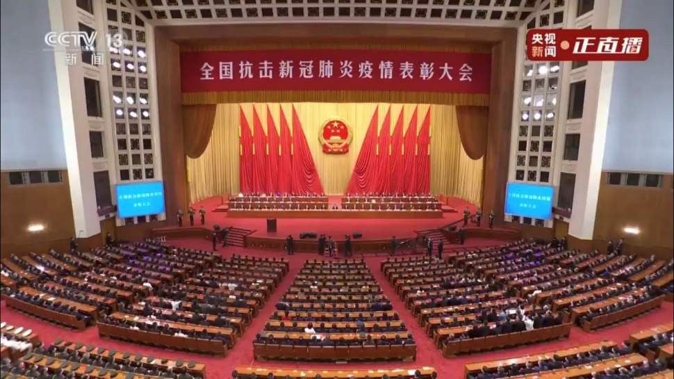 在雄壮的《向祖国英雄致敬》乐曲声中,习近平总书记为国家勋章和国家荣誉称号获得者——钟南山、张伯礼、张定宇、陈薇四位英雄颁授勋章奖章,并同他们亲切握手,表示祝贺,全场响起一阵阵热烈的掌声。大会还对全国抗击新冠肺炎疫情先进个人、先进集体,全国优秀共产党员、全国先进基层党组织进行了表彰。