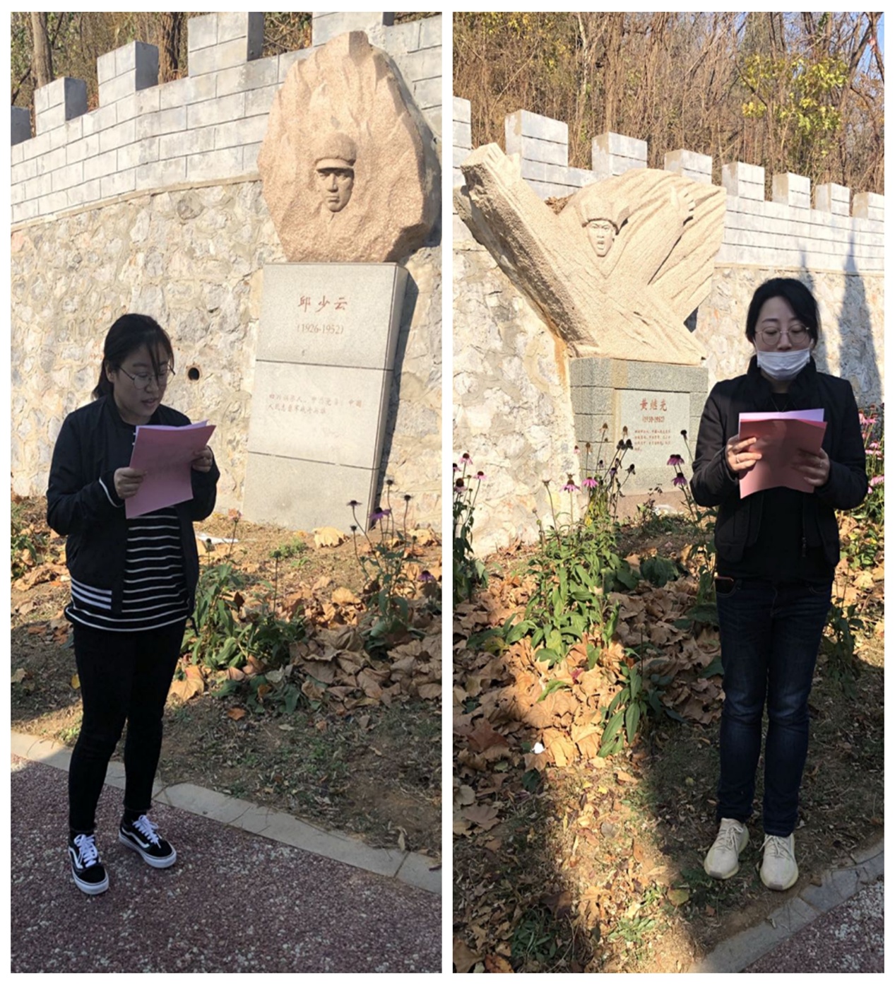 在肃穆的冬月里,大家来到志愿军烈士黄继光和邱少云的纪念雕像前,重温战斗英雄们的光辉事迹,牢记浴血奋战的红色历史,感怀美好生活的来之不易。在感动和敬佩之余,大家更加坚定理想信念,立志将奋不顾身的爱国精神发扬和传承下去,让火热的青春在实现中华民族伟大复兴中国梦的征程中闪闪发光。