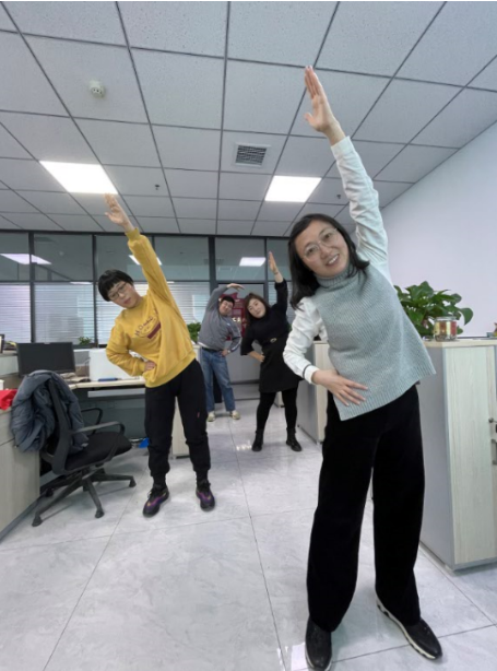 在工作日的每天上午10:30和下午15:30,山西分公司的职场准时响起欢快的经典播报声:“现在,开始做第八套广播体操!”科学又简单的体操动作,使大家的身体得到了充分地调动,既活动了关节、打开了胸腔、锻炼了肢体的协调能力,又拉伸了腰背部肌肉群,缓解了颈椎、腰椎的不适,放松筋骨、调节心情,对职工的健康十分有益。在推广广播体操期间,不少职工纷纷表示,做广播体操看起来是小事,但反映着单位员工的精神面貌,身体得到了锻炼,倦怠松懈远离了身边,工作质量和效率也将大大提升。