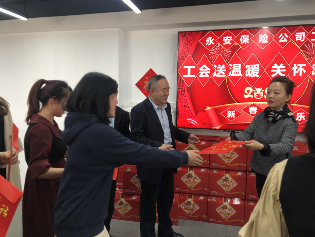 慰问中,公司党委副书记、工会主席李林泉、公司副总裁武红一行先后来到总部绿地职场客服中心和理赔中心,为一线职工发放了新春春联及米面油等慰问品,感谢他们为公司发展付出的努力和贡献。两位领导在与一线职工交谈中,询问和了解了他们的工作、生活,叮嘱他们要合理安排工作和休息,注意疫情防控,并鼓励大家在新的一年里,坚定信心,加强学习,保持乐观心态,让自己的生活更上一层楼。同时要求客服、理赔中心要引导外地职工留下来过年,在春节期间务必确保疫情防控平稳,让广大一线职工过上一个安全祥和的幸福年。