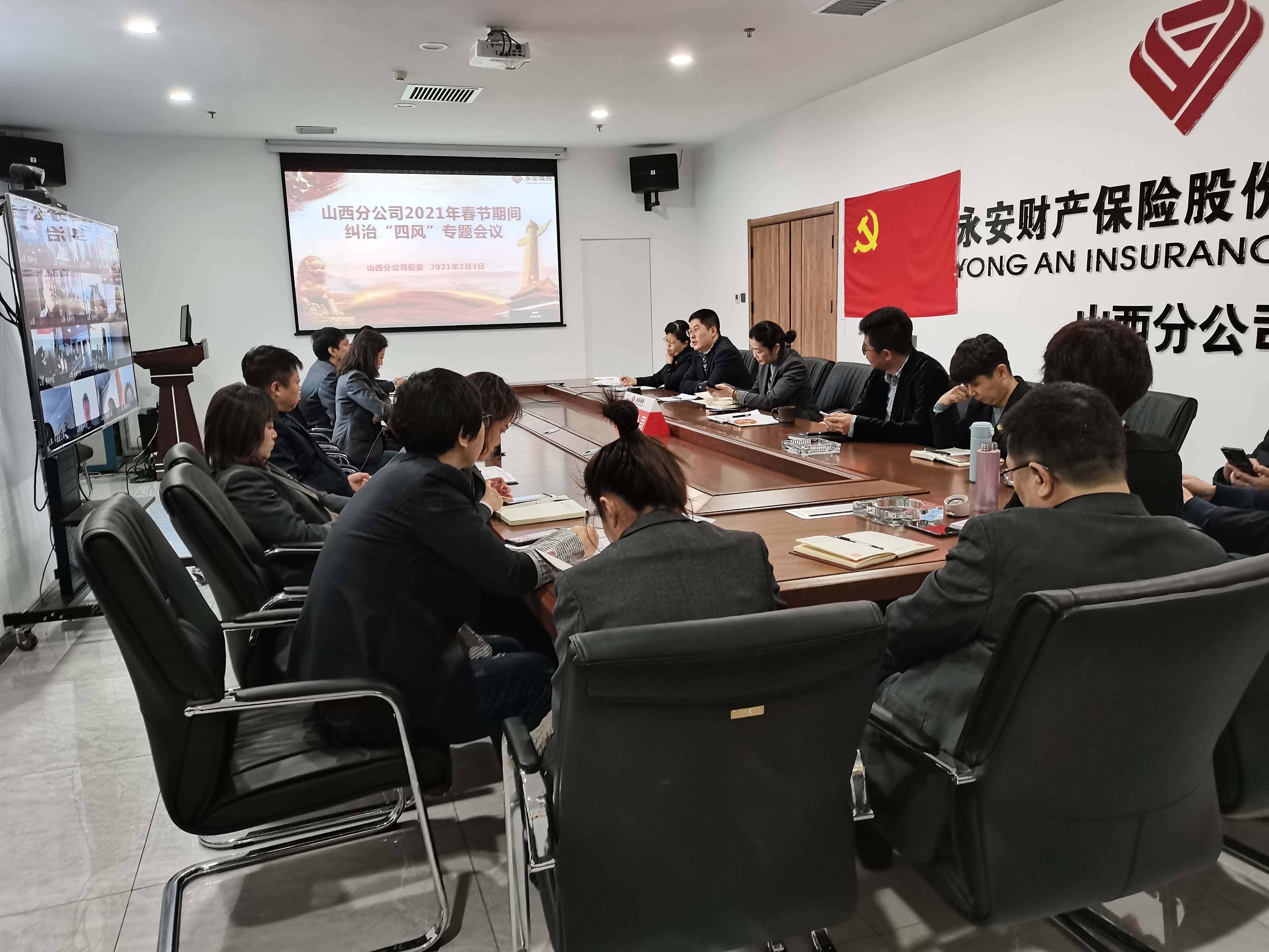 2月3日,山西分公司纪委召开2021年春节期间纠治“四风”专题会议。分公司党委领导班子成员、经营领导班子成员、分公司中层干部、机关支部全体党员、三级机构班子成员、各支部支部委员、各三级机构综合部负责人、理赔部负责人、财务人员参加了会议。