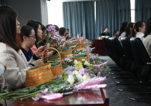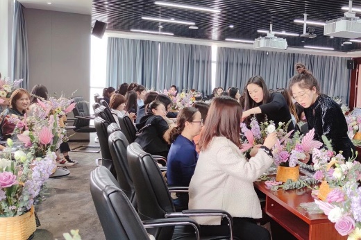 活动邀请到90后新锐花艺设计师、“花房姑娘”品牌创始人、美国芝加哥花艺学院认证讲师、中华花艺讲师孙齐担任主讲老师。活动中,孙老师向女职工们介绍插花艺术和技巧,同时对花卉的品种、特性、花语及插花手法、花卉色彩搭配等基本技巧进行深入浅出的讲解,并现场演示插花技艺。