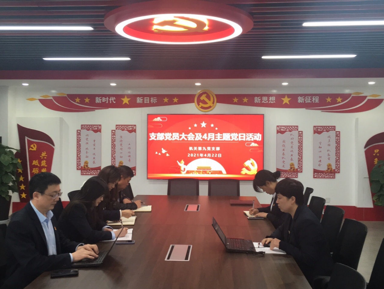 2021年4月23日下午,机关第九党支部召开支部党员大会暨四月主题党日活动。