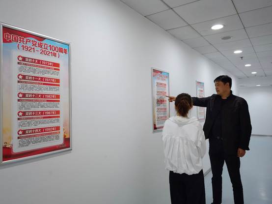 用好载体提升学习党史“主动性”。为了确保党史学习教育内化于心、外化于行,分公司党委在公司内部积极建立党史学习阵地,营造良好氛围。一是打造党史宣传文化墙。为创新党建宣传载体,加强党建文化建设,公司充分利用职场资源,打造了一条党史文化“长廊”。文化墙以“回首中国共产党百年光辉历程”为主题,通过图文并茂的形式简明介绍了中国共产党一大到十九大的发展历程及精神解读,公司还将“清廉文化”建设与党史学习教育相结合,单独设置了“清、正、廉、洁”四个板块,积极倡导全体党员干部、职工群众“学党史、扬正气”,进一步激发艰苦奋斗、爱岗敬业的精神。二是设置党建读物专区。为进一步推动党史学习不断 “升温”,公司党委对党员读书角进行了优化升级,设置了“党建读物专区”,重新添置了《中国共产党历史》《习近平新时代中国特色社会主义思想三十讲》《党史党建知识1000题》等书籍。同时,还统一购买了110本《论中国共产党历史》,发放给在职党员及全体积极分子,让大家在“读原著、学原文、悟原理”中坚守初心和使命。 三是定制党史学习笔记本。为进一步提高党员学习主动性,确保党史学习教育的质量和效果,分公司党委还为全体党员统一定制了党史学习教育专用笔记本,以此勉励广大党员加强自我学习,做到学有所思、学有所悟、学有所得。笔记本里印有中共一大到十九大的概况、党的百年大事记、中国共产党章程等内容,每一页底部还印有一些党史小知识,方便党员干部在做笔记的同时,能够随时温故而知新。