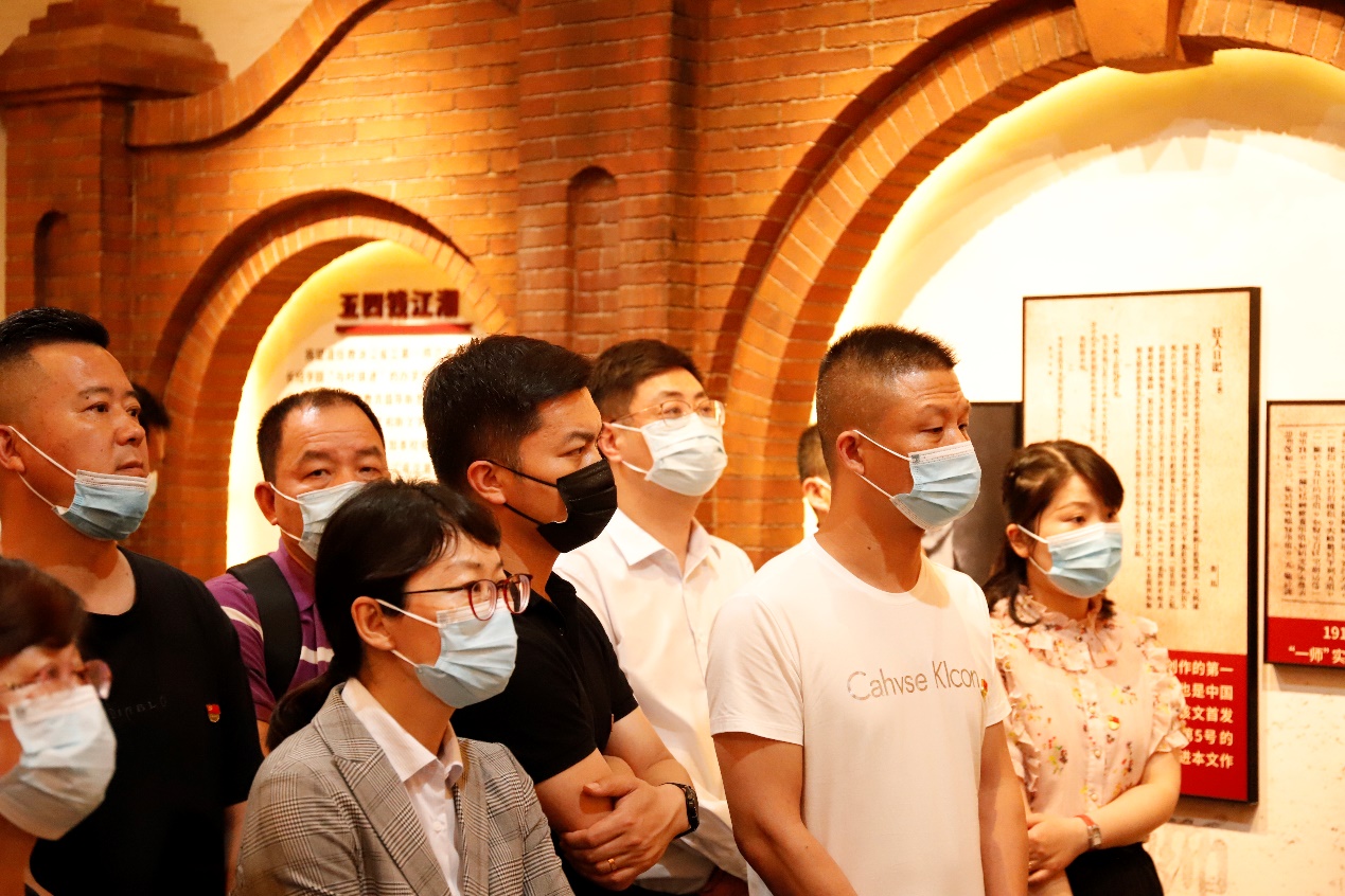随后,大家参观了陈望道翻译《共产党宣言》的柴房旧址,聆听了 “真理的味道真甜”的故事。大家纷纷表示,沿着陈望道的足迹寻求真理,感悟信仰的力量,这个学习的过程真的很甜,因为这就是真理的味道。最后,怀着追求真理的坚定信仰,大家面向党旗庄严地重温了入党誓词,并以嘹亮的歌声唱响了《没有共产党就没有新中国》。