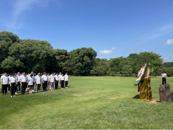 瑞金是著名的红色故都、共和国摇篮,党的初心和使命在这里得到磨砺淬炼,中华苏维埃共和国在这里创立诞生。大家先后瞻仰了叶坪革命旧址群、沙洲坝红井、“一苏大”会议旧址等红色教育基地。在庄严的红军革命烈士塔前,全体党员向烈士默哀三分钟,行三鞠躬,敬献花篮,表达对烈士们的崇高敬仰。随后全体党员面对党旗、高举右拳,重温入党誓词,铮铮誓言表达了新时代共产党员的责任和担当,许下对党忠诚、永不叛党的坚定承诺。