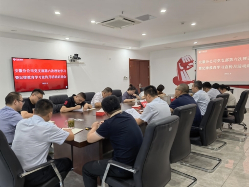 8月11日下午,安徽分公司党支部召开第六次理论学习暨纪律教育学习宣传月活动启动会。分公司班子成员、全体党员、分公司中层干部、党员发展对象、入党积极分子参加了会议,会议由分公司党支部书记王磊同志主持。