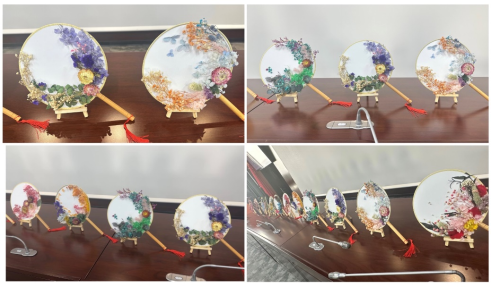 在轻松有趣的永生花DIY体验中,大家放松自我,欢声笑语,彼此交流手作灵感,在感悟匠人精神的同时,也进一步挖掘出了自己的动手潜力,制作出属于自己的独一无二的团扇作品。