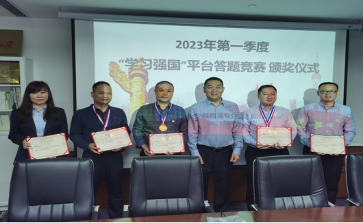 4月11日,深圳分公司党支部组织开展“学习强国”答题竞赛活动。分公司全体党员、入党积极分子以及业务骨干参加活动。党支部书记吴晓东同志参加活动并为优秀学员颁发了荣誉证书和奖品。