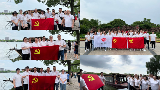 1921年,嘉兴南湖。一只红船,扬起了民族崛起的风帆。一个梦想,点燃了伟大复兴的燎原之火。大家怀着无比崇敬的心情,搭乘游船,穿过南湖,来到湖心岛,驻足红船边,感受“开天辟地、敢为人先的首创精神,坚定理想、百折不挠的奋斗精神,立党为公、忠诚为民的奉献精神”的内涵意蕴。最后,在党总支书记李文琦的领誓下,全体党员面对党旗一起重温入党誓词,宣示坚定政治信念。
