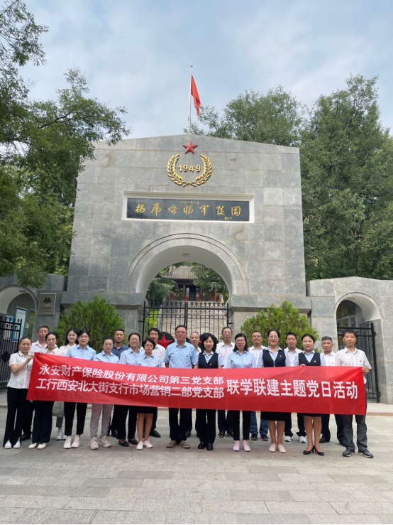 为进一步弘扬爱国主义精神,增强爱国意识,激发爱国热情,传承红色基因、发扬革命精神。9月1日,总部第三党支部与工行西安北大街支行营销二部党支部全体党员一同前往杨虎城烈士陵园开展“缅怀革命先烈 联学联建”主题党日活动,追忆历史,缅怀先烈。