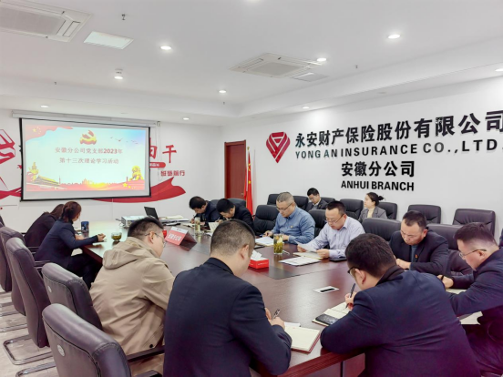 12月5日,安徽分公司党支部召开2023年第十三次理论学习(扩大)会议,集体学习中央金融工作会议精神。分公司班子、全体党员、中层干部、党员发展对象、入党积极分子参加会议。