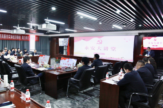 12月28日下午,永安保险公司举办第十二期“永安大讲堂”。公司党委委员、公司高管,总部各部门总经理助理(含)及以上管理人员,驻公司纪检监察组副组长、室主任、室副主任,各分公司、中心支公司、支公司党组织班子、经营班子成员及职工代表近900人现场或视频参加了此次讲座。讲座由公司党委书记、董事长常磊授课。