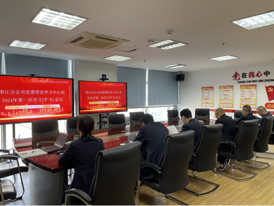 1月25日,浙江分公司召开2024年党委理论学习中心组第1次学习(扩大)会议。分公司党政班子成员参加学习,分公司党委书记、总经理章震飞主持会议。