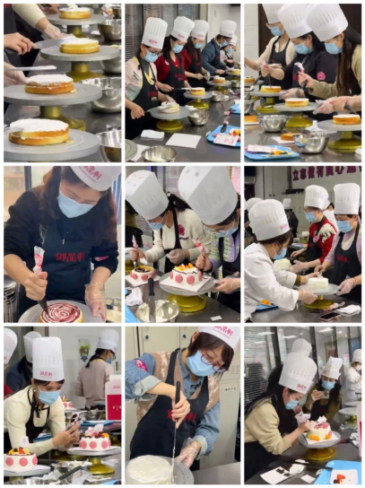 活动的重头戏——DIY专属蛋糕环节开始了,系上围裙,戴上雪白的厨师帽,大家摇身一变成了心灵手巧的烘焙大师,充分发挥想象力、创造力,在专业老师的指导下,展开了一场“视觉与味蕾的对决”,共同感受烘焙带来的乐趣与成就。不多时,各式各样的水果蛋糕陆续完成,大家纷纷拍照留念自己的创意作品,洋溢着阵阵的欢声笑语,满是快乐和幸福的味道。