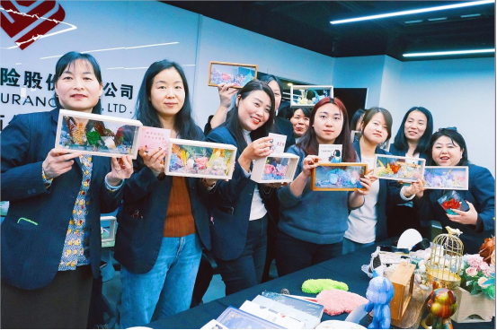 分公司工会特邀专业讲师现场指导工艺手作实践,为大家讲解了永生花相框的构图、色彩搭配、制作等技巧,鼓励大家发散思维、独立创作。女职工八仙过海,各显身手,将花朵、枝叶灵活搭配,制作出一个个生动绚丽的复古相框。方寸之间承载着岁月中的宝贵瞬间,锁住了生活的小确幸,锁住了美丽与欢乐。