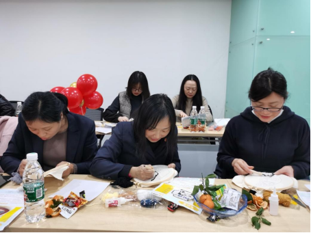 以针为笔,用线织梦。终于来到了大家期盼已久的“手工戳戳绣”环节。相较于传统刺绣的费时费工,戳戳绣既简单又好玩,大家用准备好的戳针,换上针头,穿上毛线,戳至布上,就像填色游戏一样,把图案的每一块都填满颜色,精致的绣品就出现了。在意健险部王海笑和综合部李欣桓两位手工达人的指导下,大家迫不及待地参与到制作过程中,用绣线穿过戳针,再用戳针在绷好的画布上一针一针戳出图案。在制作过程中,手工达人耐心指导如何才能戳得更可爱,并分享自己的制作心得。伴随着细细的穿刺声,大家满心欢喜地做着手工。慢慢地,可爱的笑脸小猫、呆萌的动物轮廓出来了,爱心牛角包也成型了,随着一声声的惊叹声,一幅幅作品完成了。看着自己的作品,大家脸上都露出了开心的笑容,还忍不住的跟家人分享自己的成果,整个活动气氛和谐又温馨!手工戳戳绣活动既让女职工体会到手工制作的乐趣与刺绣文化的魅力,又加强了同事间的互动交流,丰富了精神文化生活的同时营造了良好的“向美、向善、向和”的节日氛围。