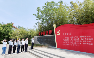 面对鲜红的党旗,在安徽分公司党支部书记胡军的领誓下,全体党员高举右手,重温入党誓词。