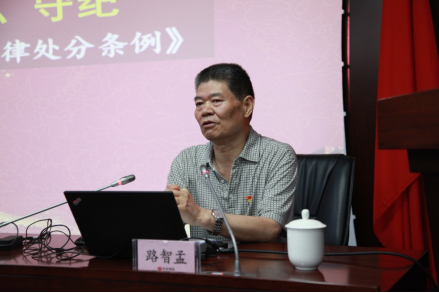 会议还邀请国防大学政治学院原教授、学院返聘教学督导专家路智孟作专题辅导讲座。路教授从“修订《条例》的重要性必要性、学习掌握《条例》的主要内容、党员干部要做遵守党纪的模范”三个方面结合典型案例对《中国共产党纪律处分条例》作深刻解读,讲座具有很强的针对性、指导性和实践性。
