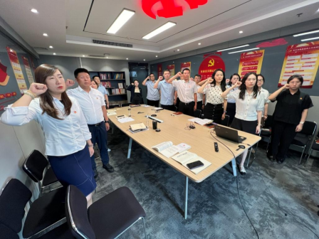 活动最后,全体党员在党旗下庄严宣誓,重温入党誓词,回溯精神根脉,感受涌动初心,激发前行动力。铮铮誓言震撼着每一位党员,大家纷纷表示要坚定信念,牢记使命,为公司高质量发展做出积极的贡献。