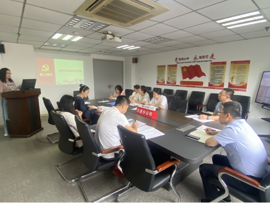 随后,全体党员干部结合习近平总书记对于金融文化“五化”建设的指示,深入学习中国特色金融文化五个方面内涵,两名党员领学《中国共产党的纪律与规矩》部分章节,观看《八小时之外》《失控的权利》警示教育片。