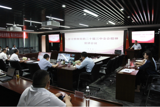 会议要求,公司各级党组织、广大党员、干部职工要以更高站位抓好全会精神学习贯彻,要自觉把思想和行动统一到全会精神上来,准确把握全会理论内涵和精神实质,切实领会习近平总书记关于全面深化改革的一系列新思想、新观点、新论断,进一步增强“四个意识”、坚定“四个自信”、做到“两个维护”。要以更高要求抓好全会精神落实落地。要以此次宣讲为契机,学懂悟透涉及金融领域的改革要求,聚焦公司改革发展中的重点事项,把学习贯彻全会精神与做好近期各项重点工作结合起来,努力在政治上、思想上、行动上不断增强履职尽责的自觉性和坚定性,把学习的收获和感悟转化为推动各项工作的强大动力和具体举措,以新气象、新作为助力公司高质量发展取得新成效。