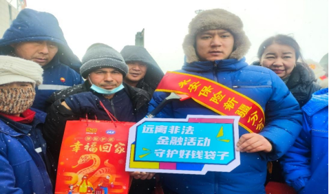 活动现场设立了爱心便民服务站,为返乡群众贴心准备了饮用水、玻璃水、雪铲及新年礼品包等实用物资,以缓解他们旅途中的疲惫和不便。为增强返乡群众的金融安全意识,通过金融知识普及专区,利用展架、宣传折页和专业讲解,普及反洗钱、防范非法金融活动和个人信息保护知识,增强群众金融安全意识,提升自我防护能力。