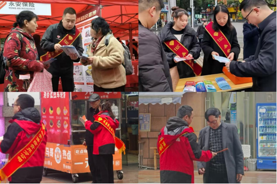 此外,贵州分公司下辖各机构团员青年积极响应号召,参与当地协会组织的集中宣教活动。通过多方联动,进一步扩大宣传覆盖面,活动现场还设置了咨询服务台,耐心讲解居民关于保险产品、理赔流程等疑问,并指导使用公司官方平台查询服务信息,倡导理性消费、科学投保的理念。
