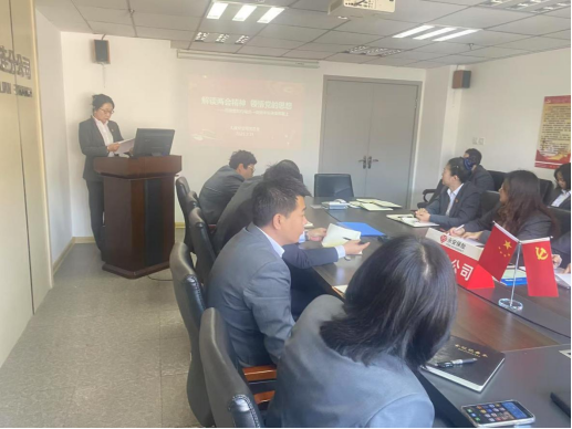 分公司党总支委员唐少静带领全体党员干部学习两会精神,对《政府工作报告》及《习近平总书记关于党的建设的重要思想概论》第一章进行深入解读。