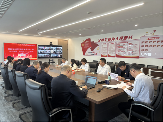 3月27日上午,浙江分公司召开党委理论学习中心组2025年第二次学习(扩大)会议暨全国两会精神主题宣讲。分公司党委书记、总经理章震飞主持并讲话,全体党政班子成员、分公司中层以上干部、全体党员共69人参加会议。