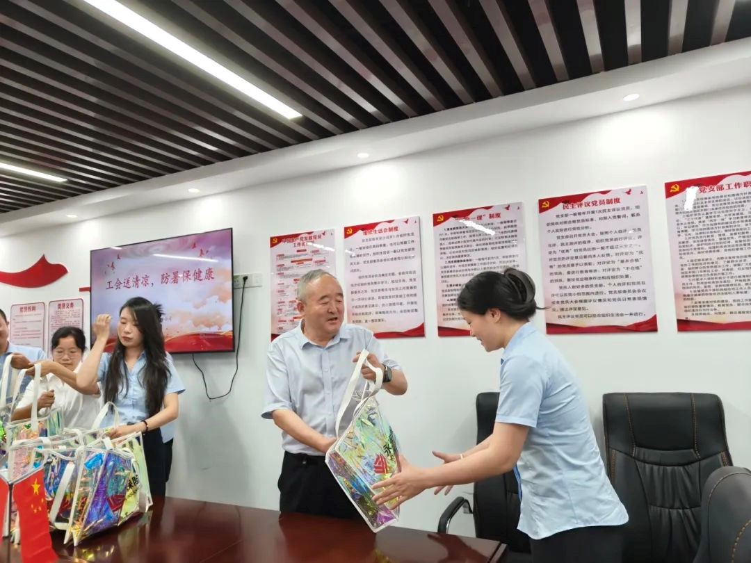 活动现场,李书记亲自将防暑物资送到员工手中,并殷切嘱咐“天气炎热,在辛苦工作的同时要注意防暑,确保身体健康”。听着李书记亲切的话语,让每一位员工感受到丝丝关爱润心田。