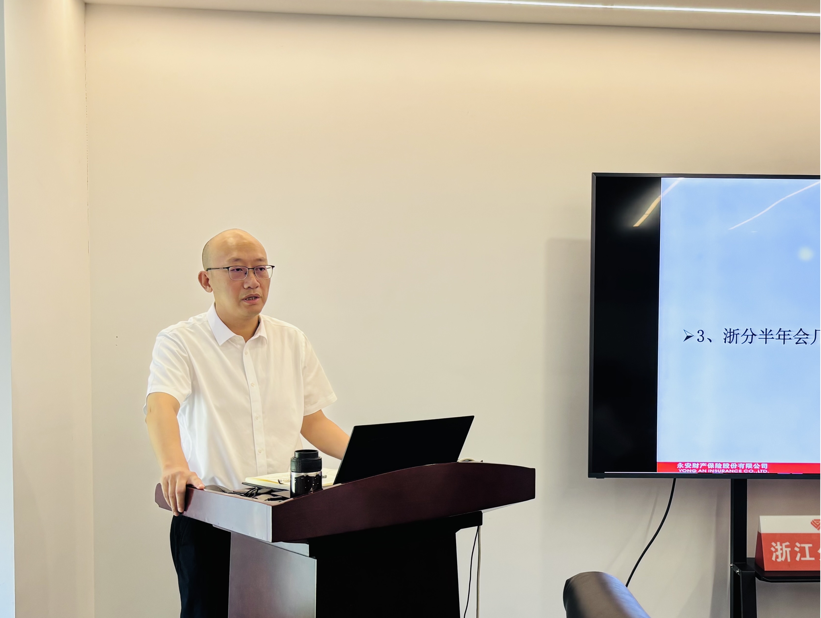 会上,分公司部分部门负责人及中支机构负责人对1-7月党建及经营管理工作进行全面分析汇报。浙江分公司临时负责人赵炜传达了公司党委书记、董事长常磊,党委副书记、总经理周晖在公司半年度会议上的讲话精神,以及对经营管理工作的具体部署。他指出,今年上半年,浙江分公司在公司党委的正确领导下,全体员工辛勤耕耘,优化险种结构、突出提质增效,经营成果较过往明显改善。但同时要认识到分公司短板,下一步要聚焦“经营守法合规、问题以案促改,扶正祛邪树正气、对症下药增效益,机构建设新陈代谢、未来发展焕发生机”三方面重点落实举措,全体干部职工要统一思想认识,突破发展困境,共同推动分公司实现质的有效提升、量的合理增长。