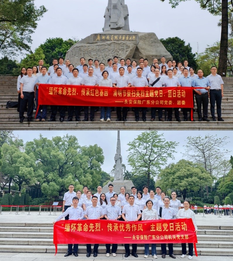 活动在广州烈士陵园举办,全体人员在广州起义烈士纪念碑前敬献花篮,党委书记薛晓俊整理绶带,大家默哀三分钟,共同深切缅怀革命先烈的丰功伟绩。 在鲜红的党旗下,党员们高举右拳,以铿锵誓言重温初心使命,现场回荡当初的承诺,彰显新时代保险人的担当。